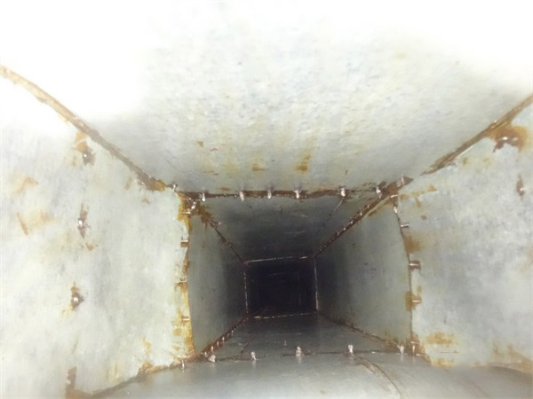 此法主要用于清洗50公分见方以上的竖烟道,技术人员先拆下管道的上截和下截,在烟道上方固定高空安全绳,系上安全带,技术人员从上至下清洗竖烟道内的油污。此法危险性较大,技术性强,费用较高,清理效果好。由于竖烟道一般积油较少一年清洗一次即可。参考价格:120~160元/平方米